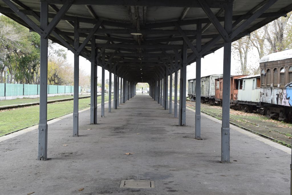 El andén, con vías de ambos lados, tiene unos 150 metros de largo y se encuentra cubierto en toda su extensión por un techo con pendiente hacia el centro, de chapas acanaladas sostenido por cabriadas y columnas de madera.